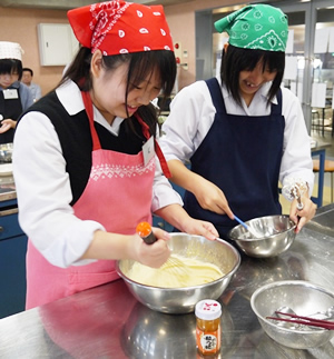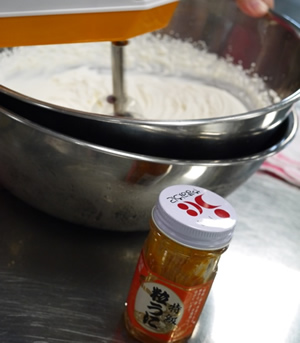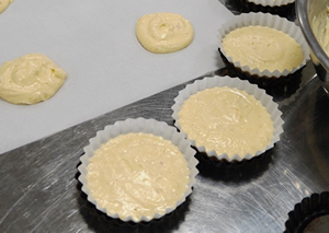 下関南高校食物部の伝統のお菓子、南ジェンヌ(マドレーヌ)にウニを入れてみました。